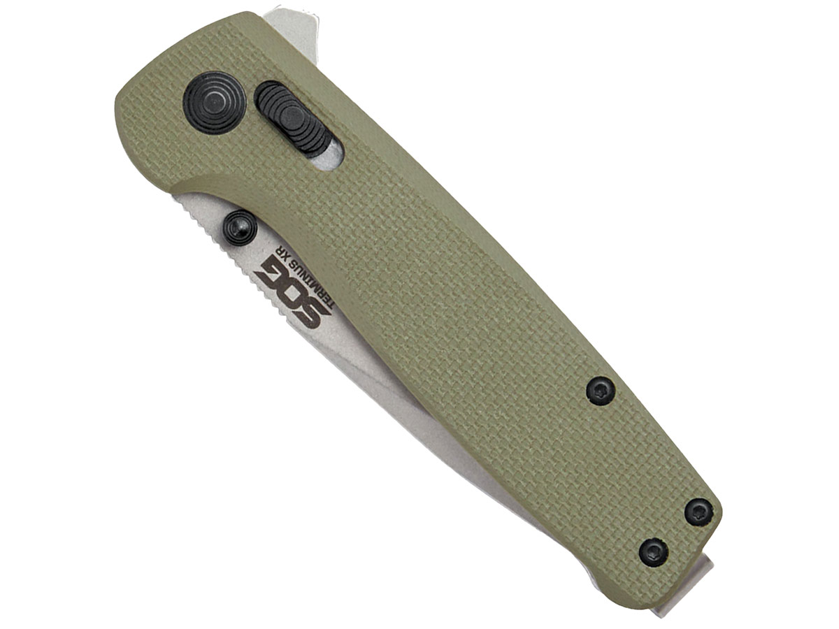 Нож складной SOG Terminus XR, Olive DrabSOG Terminus XR — это многофункциональный складной нож, который станет надежным спутником в повседневной жизни. Он создан для тех, кто ценит практичность и долговечность в одном инструменте. Клинок ножа можно легко открыть двумя способами — с помощью флиппера или шпенька, что делает его использование быстрым и удобным. Рукоять, выполненная из G10, гарантирует надежный и уверенный захват.Клинок сделан из стали D2, одной из наиболее популярных сталей в ножевой промышленности. Сталь D2 содержит 12% хрома, что обеспечивает ей хорошую устойчивость к коррозии, хотя она и не является полностью нержавеющей. Преимущества этой стали включают её способность долго сохранять остроту режущей кромки и высокую ударную вязкость, что делает её отличным выбором для изготовления ножей.Рукоять ножа выполнена из G10 — композитного материала, состоящего из стеклоткани и эпоксидной смолы. G10 известен своей исключительной прочностью, водостойкостью и устойчивостью к ударам. Этот материал легко поддается обработке и окрашиванию, что делает его востребованным в производстве современных ножей. На рукояти расположена съёмная клипса с глубокой посадкой.Таким образом, SOG Terminus сочетает в себе прочность, надежность и функциональность. Его универсальный дизайн и высококачественные материалы делают его идеальным выбором для повседневного использования, обеспечивая долговечность и эффективность в любых условиях.Характеристики SOG Terminus XR Olive Drab:Длина ножа: 183 ммДлина клинка: 75 ммТолщина обуха: 2.5 ммТип замка: XR LockМатериал клинка: D2Материал рукояти: G10Масса: 91 г