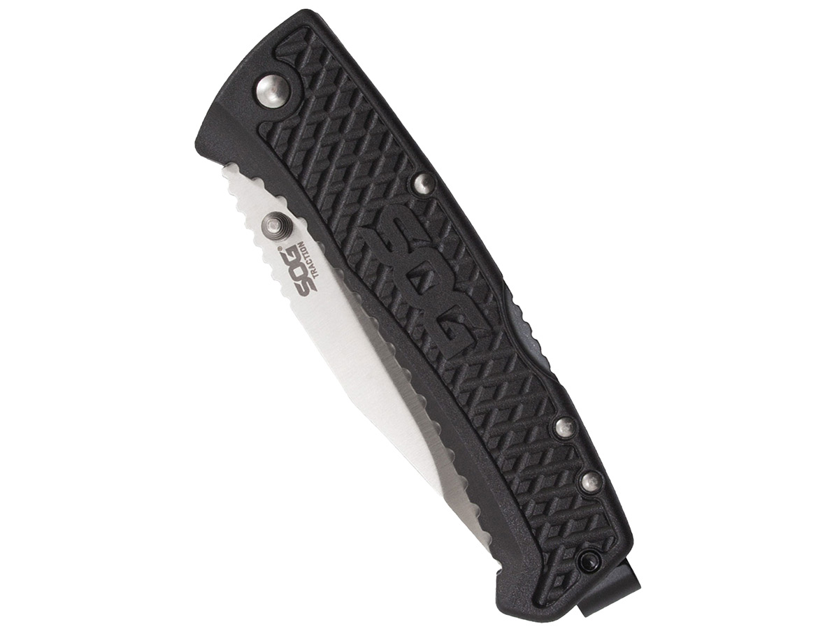 Нож складной SOG TractionСкладной нож SOG Traction – это компактный и надёжный инструмент, идеально подходящий для повседневного использования.SOG Traction оснащён надёжным замковым механизмом, который фиксирует клинок в открытом положении, обеспечивая безопасность при работе. Компактный и лёгкий, он идеально подходит для ношения в кармане или на поясе, обеспечивая быстрый доступ и удобство в использовании.Клинок изготовлен из стали 5Cr13MoV, которая обеспечивает отличную прочность и устойчивость к коррозии. Эта сталь легко затачивается и долго сохраняет остроту, что делает нож идеальным для различных задач.Рукоятка выполнена из термопластика GRN, известного своей долговечностью и устойчивостью к ударам. Этот материал обеспечивает комфортный и надёжный хват, даже при длительном использовании.Нож поставляется в блистере.Характеристики SOG Taction:Длина ножа: 203 ммДлина клинка: 89 ммТолщина обуха: 2.5 ммТип замка: Lock BackМатериал клинка: Сталь 5Cr13MoVМатериал рукояти: GRNМасса: 65 г