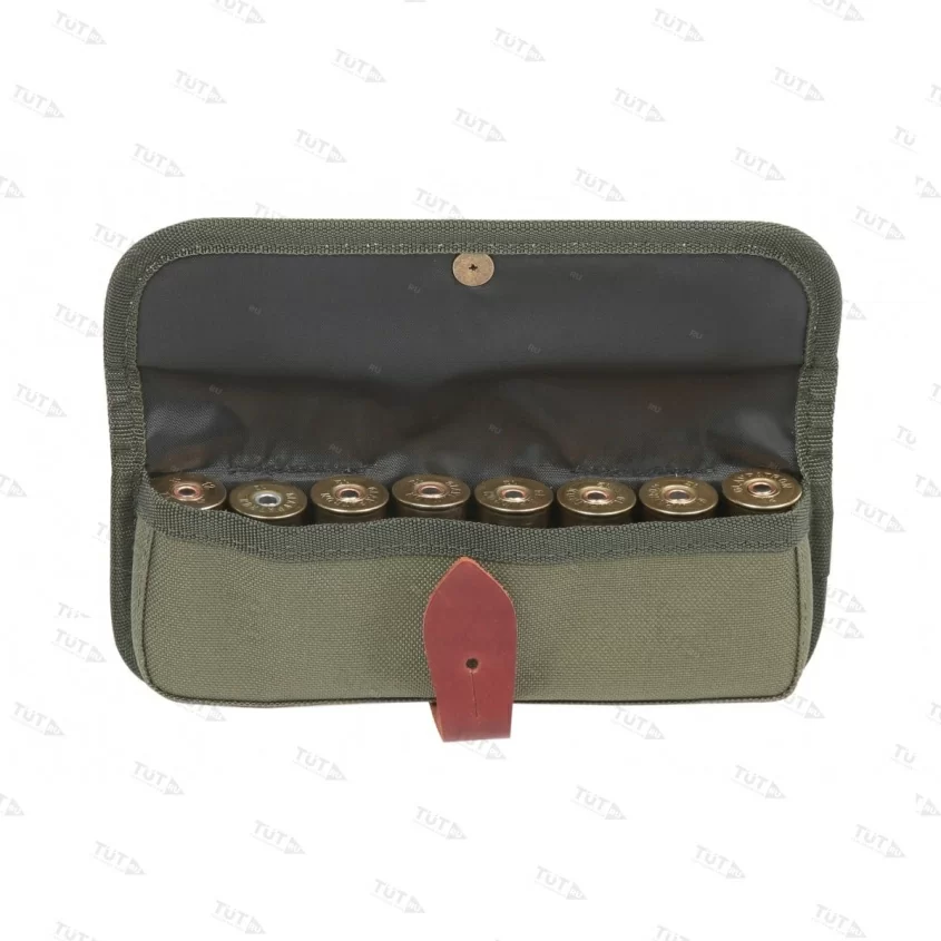 Подсумок изготовлен из синтетической ткани. Рассчитан на 8 патронов: 12,16,20 калибра. Подсумок застёгивается на кобурную кнопу, по средствам кожаного гортика. На обратной стороне подсумка, имеются шлёвки для переноски на ремне (ширина ремня до 5 см)