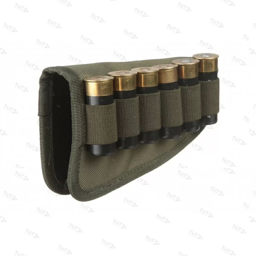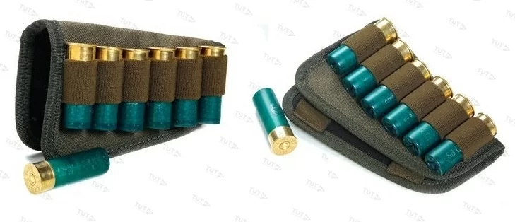 Патронташ выполнен из синтетической ткани, предназначен для крепления на приклад. Под 6 патронов 12, 16 и 20 калибра