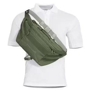Стойкий к растяжению полиэстер 600D', 'Нейлоновая ткань рип-стоп 420D', 'Молнии YKK®', 'Фурнитура Duraflex®', 'Система креплений по трем точкам', 'Можно носить на левом и правом плече', '2 внутренних сетчатых кармана', 'Патч-панель на фронтальной части', '1 главное отделение', 'Потайной карман для кобуры с пистолетом (снабжен безопасной застежкой с локером)', 'Тыльный потайной карман для документов', 'Габариты: 51см х 20см х 8.5см', 'Вместимость: 8.5 литра'