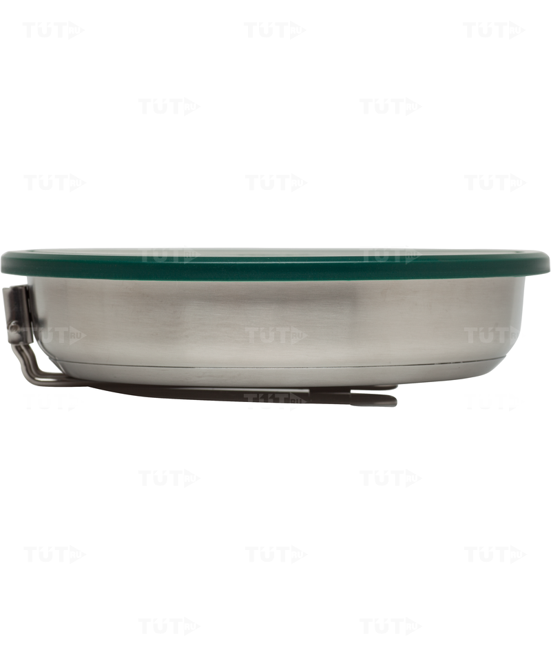 Имеет толстое дно и складную ручку