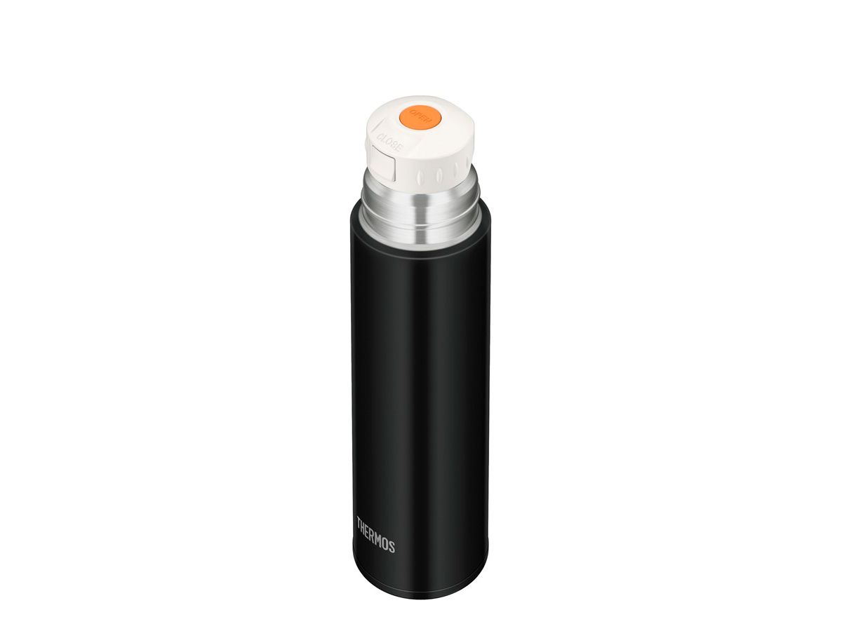Термос для напитков THERMOS FFM-501 MTBK, объем 0,5 литра, цвет чёрныйТермос для напитков THERMOS FFM-501 MTBK имеет объем 0,5 литра, а весит всего 250 грамм. Термос поддерживает температуру горячих напитков 12 часов, а холодных - 24 часа. Его удобно держать, а стильный дизайн радует глаза.Материалы высокого качества, используемые при изготовлении термоса, не содержат бисфенол-А (BPA) и поливинилхлорид (PVC), инертны по отношению к содержимому, не впитывают и не выделяют посторонние запахи, отличаются термостойкостью и высокой механической прочностью. Колба и корпус термоса сделаны из пищевой нержавеющей стали. При создании термоса использованы фирменные технологии вакуумизации и бесшовной сварки.Термос имеет удобную крышку-чашку и винтовую пробку с откидным механизмом. Оранжевая кнопка, расположенная наверху пробки, при нажатии открывает верхнюю часть, которая автоматически фиксируется и не опрокидывается при питье. Удобный поильник позволяет пить непосредственно из термоса, без выкручивания пробки. Узкое отверстие поильника предотвращает расплескивание жидкости при использовании термоса на ходу. Термос прост в уходе. Пробка легко разбирается для очистки.Подходит для автомобильных подстаканников и велосипедных держателей. Изготовлен в соответствии с Международным стандартом качества EN12546-1:2000.Характеристики:Объем: 0,5лМасса: 250гВремя сохранения тепла: 12чВремя сохранения холода: 24чВысота: 235ммДиаметр горлышка: 42ммДиаметр дна: 65ммТип крышки: крышка-чашкаТип пробки: винтовая, с откидным механизмомМатериал корпуса: нержавеющая сталь 18/8 AISI 304 Stainless SteelМатериал колбы: нержавеющая сталь 18/8 AISI 304 Stainless SteelМатериал крышки-пробки: пищевой пластикМатериал прокладок-уплотнителей: пищевой силиконЦвет: чёрный