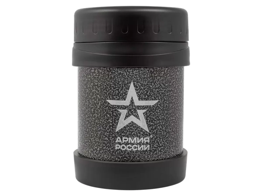 Термос для еды THERMOS АРМИЯ РОССИИ ЧАСОВОЙ, объем 0,35 литра, тёмно-серыйТермос для еды "Часовой" АРМИЯ РОССИИ имеет объем 0,35 литра и весит 280 г. Лимитированная серия изготовлена известным производителем термосов — компанией THERMOS совместно с брендом АРМИЯ РОССИИ. Корпус термоса сделан из пищевой нержавеющей стали и имеет специальное ударопрочное покрытие Hammerton (молотковая эмаль) тёмно-серого цвета с рельефной поверхностью.Термос поддерживает температуру горячих продуктов 5 часов, а холодных — 7 часов. При создании термоса использованы фирменные технологии вакуумизации и бесшовной сварки.Материалы высокого качества, используемые при изготовлении термоса, не содержат бисфенол-А (BPA), инертны по отношению к содержимому, не впитывают и не выделяют посторонние запахи, отличаются термостойкостью и высокой механической прочностью. Термос имеет усиленное противоскользящее дно.Благодаря широкому горлышку термос подходит как для первых, так и для вторых блюд, а также его удобно мыть.Особенности THERMOS ЧАСОВОЙ:Высокие температурные характеристикиСуперпрочный и износостойкийРельефное ударопрочное покрытиеУсиленный корпус и противоскользящее основаниеГерметичность и гигиеничностьПрост в уходе и эксплуатацииХарактеристики THERMOS ЧАСОВОЙ:Объем: 0,35 лМасса: 280 гВремя сохранения тепла: 5 чВремя сохранения холода: 7 чВысота: 130 ммДиаметр горлышка: 80 ммДиаметр дна: 85 ммТип крышки: крышка-пробкаТип пробки: винтоваяМатериал корпуса: нержавеющая сталь 18/8 AISI 304 Stainless SteelМатериал колбы: нержавеющая сталь 18/8 AISI 304 Stainless SteelМатериал крышки-пробки: пищевой пластикМатериал прокладок-уплотнителей: пищевой силиконПокрытие: молотковая эмальЦвет: серый
