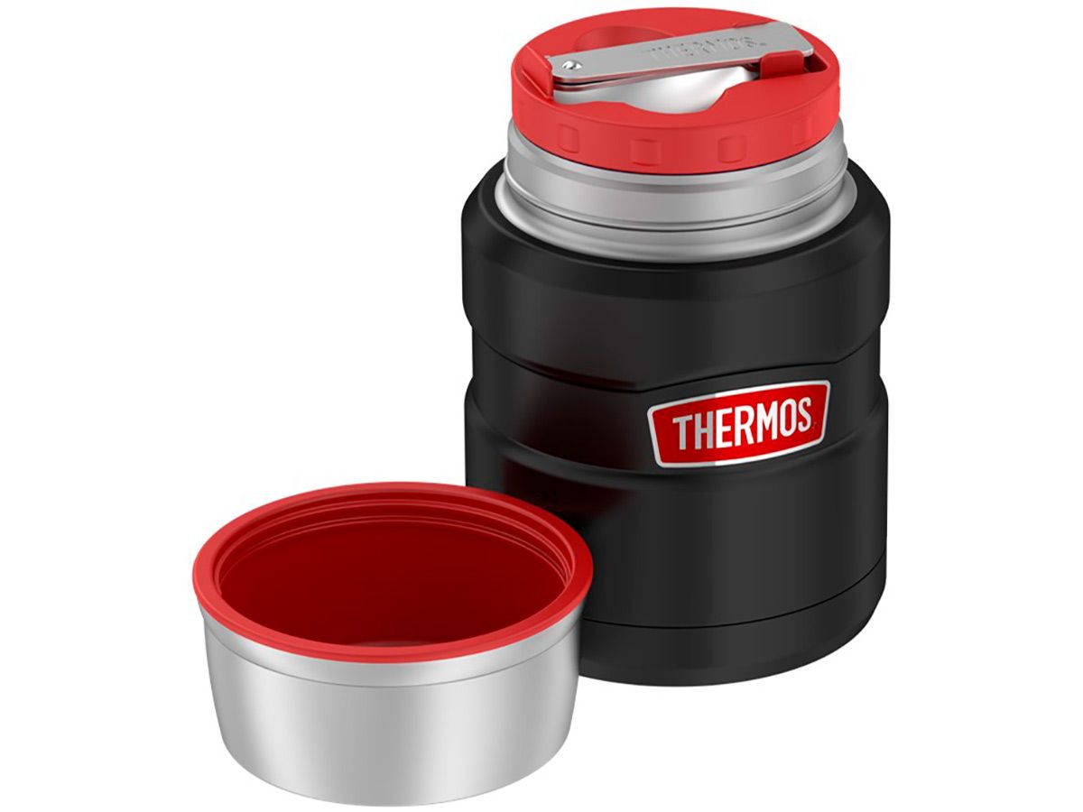 Термос для еды THERMOS KING SK-3000 RCMB 0,47L со складной ложкой, цвет чёрныйЗаслуженную популярность модель SK-3000 получила благодаря комфортному использованию и высоким температурным показателям – блюда сохраняются в термосе горячими не менее 9 ч, или холодными – в течение 14 часов, и остаются ароматными и свежими.Длительный режим удержания температуры и многолетний срок службы термоса обеспечиваются за счет высококачественных материалов и современных технологий производства (United States Patent D587.534).Корпус и колба, а также складная ложка и крышка-чашка изготовлены из пищевой нержавеющей стали премиум-категории с повышенным содержанием никеля и хрома, делающих сплав термостойким, ударопрочным и инертным по отношению к пище. Технология глубокой вакуумизации межстеночного пространства делает термос KING SK-3000 компактным и удерживающим нужный температурный режим длительное время. Пробка с нишей для ложки изготавливается из современных сополимеров, безопасных для здоровья, не выделяющих и не впитывающих посторонние запахи. Особая обработка нержавеющей стали и технология бесшовной сварки делает внутренние стенки термоса максимально гладкими, поэтому остатки пищи на них не задерживаются, и термос легко мыть.Особенности THERMOS KING 3000 RCMB:Объём:0,47 лМасса: 0,36 кгВремя сохранения тепла: 9 чВремя сохранения холода: 14 чМетод изоляции: вакуумРазмер: высота - 14 см; диаметр горлышка - 7 см; диаметр дна – 9 смТип крышки: крышка-чашкаТип пробки: винтоваяЦвет: чёрныйКорпус, колба:нержавеющая сталь 18/8 AISI 304 Stainless SteelКрышка-пробка – пищевой пластик, красныйПрокладки-уплотнители – пищевой силикон
