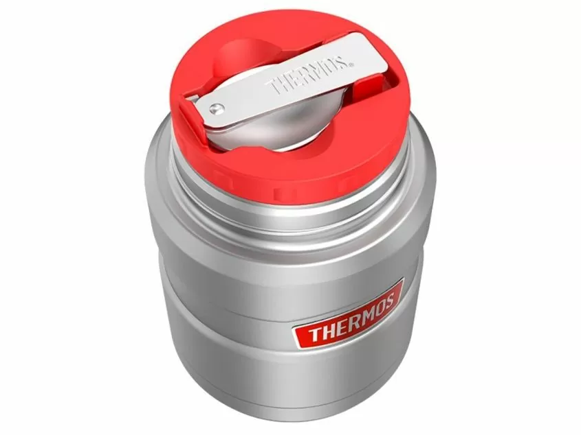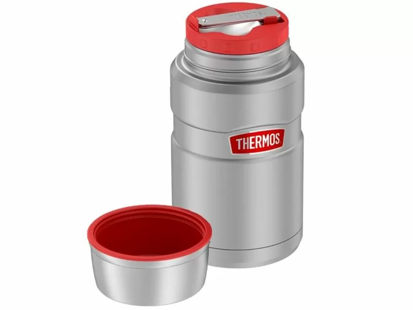 Термос для еды THERMOS KING SK3020 RCMS стальной со складной ложкойТермос для еды – полезная замена фастфуду и перекусу на бегу. Широкое горло, оптимальный объём, универсальная крышка-чашка, складная ложка из нержавеющей стали на надёжных шарнирах позволят полноценно пообедать горячей домашней пищей вне дома в любых условиях.Небьющиеся стенки термоса из высококачественной нержавеющей стали способны противостоять внешним повреждениям, а благородное матовое покрытие глубокого графитового цвета надолго сохранит первоначальный вид изделия. Термос достаточно компактный, чем удобен в транспортировке и хранении. Блюда сохранятся в нём горячими не менее 14 ч, а холодными - в течение суток, и при этом еда остается ароматной и свежей.Высокие и правдивые характеристики термоса KING SK-3020 обеспечиваются за счет высококачественных материалов и уникальной технологии вакуумизации межстеночного пространства, применяемых в процессе его производства. Термос KING SK-3020 изготовлен по патенту United States Patent D572.981 в соответствии с Международным стандартом качества EN12546-1:2000.Особенности THERMOS KING SK3020 RCMS:Объем:0,71 лМасса: 0,4 кгВремя сохранения тепла: 14 чВремя сохранения холода: 24 чМетод изоляции: вакуумРазмер: высота - 183 мм; диаметр горлышка - 70 мм; диаметр дна – 90 ммТип крышки: крышка-чашкаТип пробки: винтоваяЦвет: стальнойКорпус, колба:нержавеющая сталь 18/8 AISI 304 Stainless SteelКрышка-пробка – пищевой пластик, красныйПрокладки-уплотнители – пищевой силикон