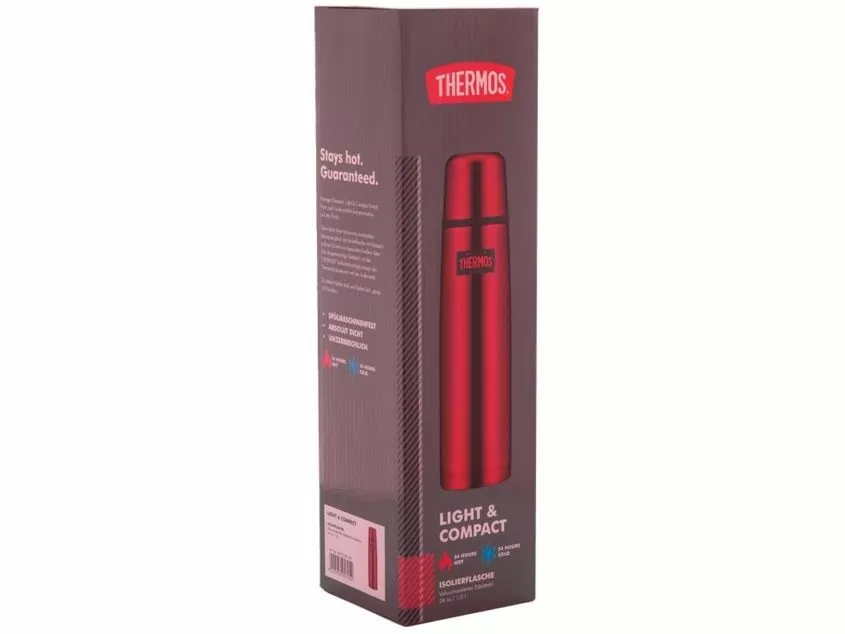 Термос THERMOS FBB-1000 RedКлассические термосы серии FBB – визитная карточка компании THERMOS: они показывают самые высокие результаты в испытаниях на прочность и уверенно держат лидирующие показатели по продолжительности удержания температур: благодаря технологии глубокой вакуумизации межстеночного пространства, термос FBB объемом 1,0 литр сохраняет напитки горячими или холодными в течение суток.Все материалы, из которых изготовлен термос THERMOS FBB-1000 Red, экологически чистые, безопасные для здоровья и соответствуют Международному стандарту качества EN12546-1:2000. Корпус термоса из нержавеющей стали 18/8 AISI 304 Stainless Steel способен противостоять внешним повреждениям и вмятинам. Колба термоса из пищевой стали с повышенным содержанием никеля и хрома инертна по отношению к содержимому, поэтому напитки сохраняются в термосе долгое время ароматными и свежими.Удобная пробка клапанного типа легко отрывается одним нажатием, поэтому из термоса можно пить или наливать напиток в чашку-крышку, не выкручивая пробку. Герметичность термоса обеспечивается прокладками из пищевого силикона – инертного, долговечного и термостойкого материала.Особенности THERMOS FBB-1000 Red:Объём: 1лВысота: 30,5 смМатериал корпуса: нержавеющая сталь 18/8 AISI 304 Stainless SteelМатериал колбы: нержавеющая сталь 18/8 AISI 304 Stainless SteelДиаметр горлышка - 4,6 смДиаметр дна - 8,0 смКрышка-чашкаТип пробки: клапаннаяМетод изоляции: вакуумВремя сохранения тепла: до 24 чВремя сохранения холода: до 24 чЦвет: красный