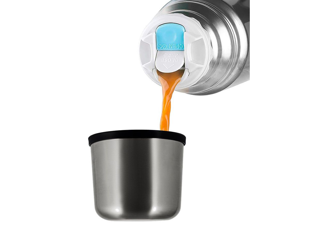 Термос для напитков THERMOS FBB-750, объём 0,75 литра, серыйКлассические термосы серии FBB – визитная карточка компании THERMOS: они показывают высокие результаты в испытаниях на прочность и уверенно держат лидирующие показатели по продолжительности удержания температур: благодаря технологии глубокой вакуумизации межстеночного пространства, термос FBB объемом 0,75 литра сохраняет напитки горячими 18 часов, а холодными в течение суток. Материалы, из которых изготовлен термос, экологически чистые, безопасные для здоровья. Все характеристики термоса соответствуют Международному стандарту качества EN12546-1:2000.Ударопрочный корпус термоса из нержавеющей стали 18/8 AISI 304 Stainless Steel способен противостоять внешним повреждениям и вмятинам. Покрытие серого цвета долгие годы будет сохранять первоначальный внешний вид термоса. Колба термоса из пищевой стали с повышенным содержанием никеля и хрома инертна по отношению к содержимому, поэтому напитки сохраняются в термосе долгое время ароматными и свежими.Удобная пробка клапанного типа легко отрывается одним нажатием, поэтому из термоса можно пить или наливать напиток в крышку-чашку, не выкручивая пробку. На верхней части пробки предусмотрены указатели «открыто/закрыто» (OPEN/CLOSE). Пробка полностью разбирается для тщательной очистки.Благодаря компактным размерам термос легко поместится в рюкзаке или сумке. Диаметр основания термоса подходит для большинства велосипедных держателей и автомобильных подстаканников.Характеристики THERMOS FBB-750:Объём: 0,75 лМасса: 470 гВремя сохранения тепла: 18 чВремя сохранения холода: 24 чМетод изоляции: вакуумВысота: 28 смДиаметр горлышка: 4,6 смДиаметр дна: 7,5 смТип крышки: крышка-чашкаТип пробки: клапаннаяМатериал корпуса: нержавеющая сталь 18/8 AISI 304 Stainless SteelМатериал колбы: нержавеющая сталь 18/8 AISI 304 Stainless SteelМатериал крышки-пробки: пищевой пластикМатериал прокладок-уплотнителей: пищевой силиконЦвет: серый