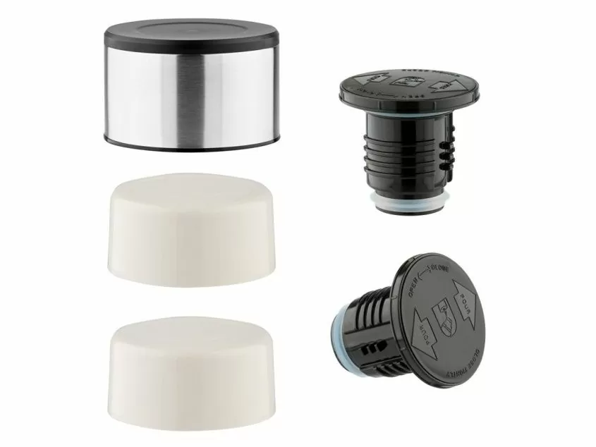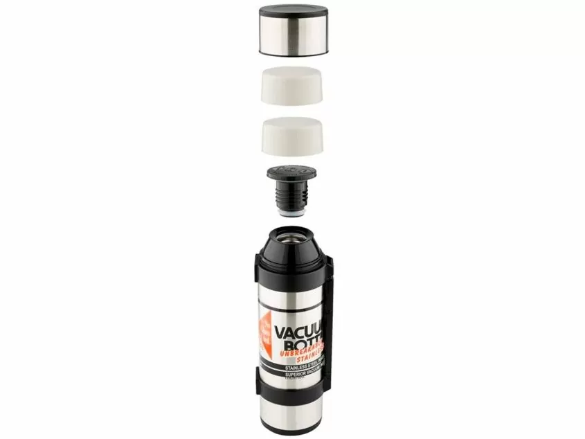 Термос для напитков THERMOS NCB-1800 Rocket Bottle, объём 1,8 литра, стальной/чёрныйТермос для напитков THERMOS NCB-1800 Rocket Bottle имеет объём 1,8 литра и весит 1,12 кг. Термос поддерживает температуру горячих и холодных напитков рекордные 48 часов. Выполнен из нержавеющей стали с чёрными полимерными элементами.Материалы высокого качества, используемые при изготовлении термоса, не содержат бисфенол-А (BPA), инертны по отношению к содержимому, не впитывают и не выделяют посторонние запахи, отличаются термостойкостью и высокой механической прочностью. Колба и корпус термоса сделаны из пищевой нержавеющей стали. При создании термоса использованы фирменные технологии вакуумизации и бесшовной сварки.Термос разработан японской корпорацией Nissan Thermos и занимает лидирующие позиции по температурным характеристикам. Он сохраняет содержимое горячим или холодным более двух суток, а по данным РИПИ (Российский институт потребительских испытаний) удерживает горячую температуру до 54 часов. Винтовая пробка имеет пазы для выливания напитков. Чтобы налить напиток в чашку, достаточно повернуть пробку на пол-оборота и не выкручивать её полностью. На верхней стороне пробки предусмотрены указатели потока жидкости.Термос оснащён откидной ручкой, ремнём для переноски и укомплектован двумя дополнительными чашками из термостойкого пластика.Надёжный и практичный термос NCB-1800 пользуется большой популярностью среди путешественников, охотников и рыболовов, спортсменов-экстремалов и сотрудников экстренных служб.Особенности THERMOS NCB-1800 Rocket Bottle:Длительное сохранение напитков горячими или холоднымиГерметичная поворотная пробка с направляющими для выливания напитковДве дополнительные термостойкие чашкиКонструкция «стоп» для фиксации термоса в горизонтальном положенииСкладная ручкаСъёмный регулируемый ременьСуперпрочный и износостойкийГерметичность и гигиеничностьПрост в уходе и эксплуатацииХарактеристики THERMOS NCB-1800 Rocket Bottle:Объём: 1,8лМасса: 1120гВремя сохранения тепла: 48чВремя сохранения холода: 48чВысота: 350ммДиаметр горлышка: 50ммДиаметр дна: 105ммТип крышки: крышка-чашкаТип пробки: винтоваяМатериал корпуса: нержавеющая сталь 18/8 AISI 304 Stainless SteelМатериал колбы: нержавеющая сталь 18/8 AISI 304 Stainless SteelМатериал крышки-пробки: пищевой пластикМатериал прокладок-уплотнителей: пищевой силиконЦвет: стальной