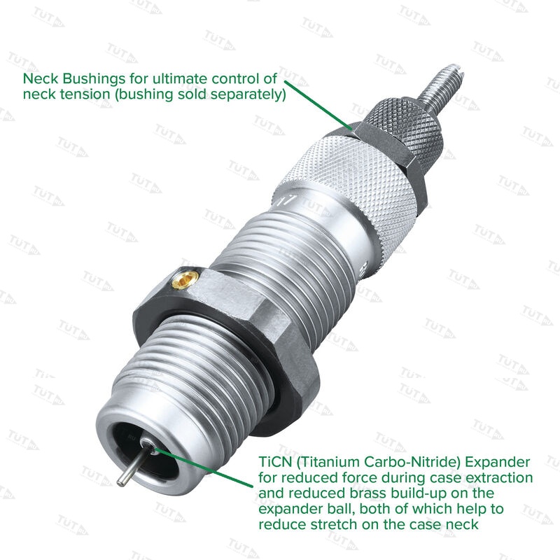 Матрицы Matchmaster Competition – это матрицы с максимальным качеством исполнения, характеристиками, превосходной посадкой и отличной точностью. Матрицы MМС доступны более чем для 30-и калибров, в исполнении F-L, Neck, в комплектах и отдельно. Каждая матрица изготовлена из закаленной стали, внутренние поверхности просверлены с высокой точностью и расширены в соответствии со строгими стандартами, а также отполированы вручную. Для формовочных матриц ММС используются сменные бушинг-втулки (продаются отдельно). Эти втулки шейки с изменяемым диаметром уже много лет используется точными стрелками и стрелками на дальние дистанции. Это позволяет вам менять самоцентрирующуюся сменную втулку шейки, чтобы точно установить величину натяжения пули. Это также сводит к минимуму выработку латуни гильзы и увеличивает количество перезарядок. Матрица для посадки пули Matchmaster прекрасно отполирована и имеет вороненую отделку, как на лучшем огнестрельном оружии. Большая регулировочная ручка микрометра имеет увеличенные разметки и легко читается. Посадочные матрицы ММС оснащены свободно плавающей и самоцентрирующейся системой посадки пуль с удобным окном для размещения, что позволяет вам поместить пулю в окно и просто запустить пресс. Больше нет необходимости удерживать пулю на гильзе или подвергать опасности пальцы. Внутреннее приспособление улавливает и удерживает пулю в идеальном соответствии с гильзой и направляет ее во время операции посадки для достижения максимально концентрических результатов.