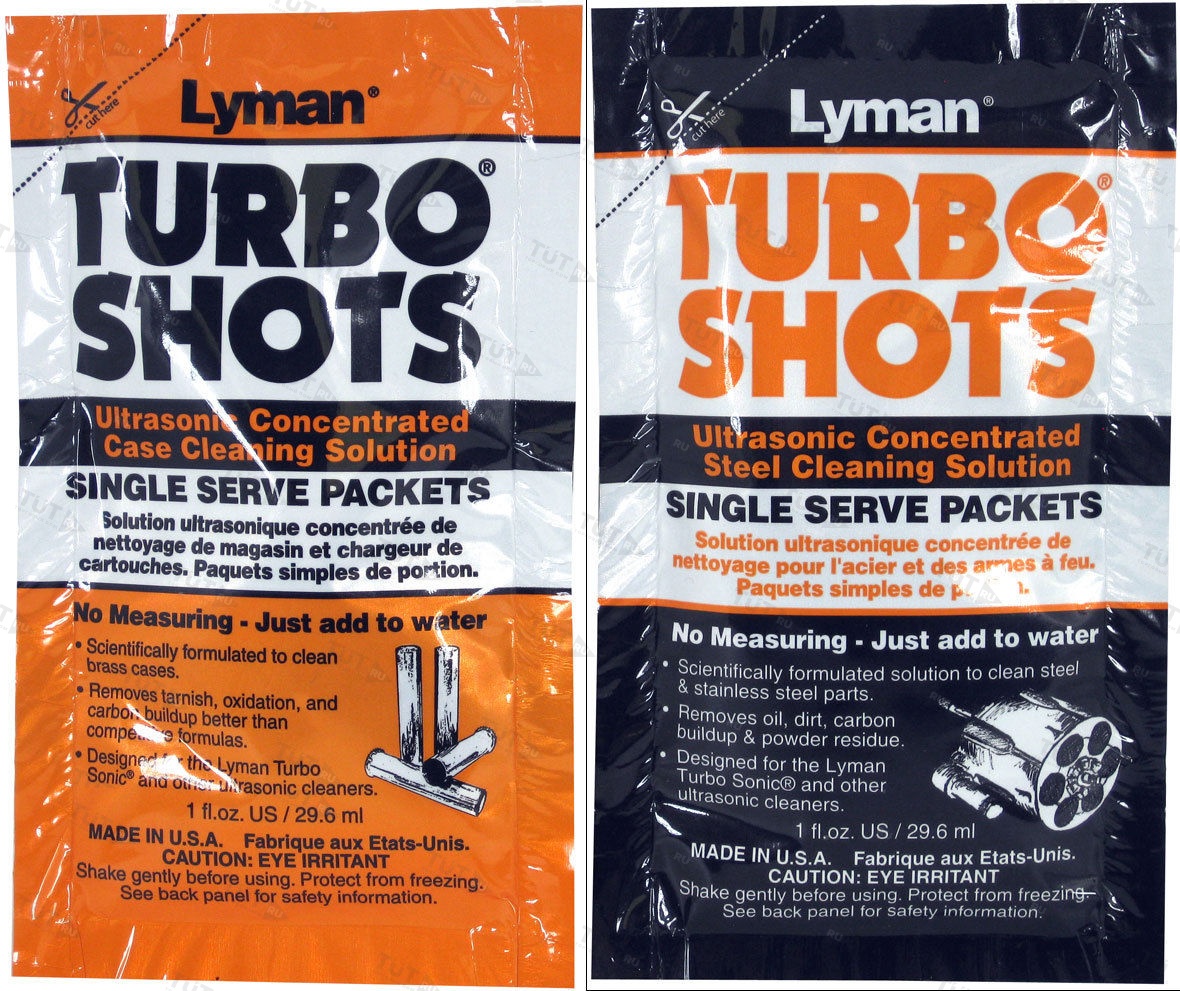 Чистящее средство Lyman Turbo Sonic Ultrasonic специально разработано для ультразвуковых чистящих машин. Такой способ очистки позволяет вам полностью очистить гильзу снаружи и внутри менее чем за 10 минут. Ультразвук создает «микровихри», которые удаляют сложные загрязнения с гильз, частей оружия и другого оборудования, которое может поместиться в аппарат. Это средство остается эффективно в течение 30 циклов очистки и прекрасно удаляет даже самый въевшийся нагар. Заметьте, что ультразвуковая обработка, хоть и удаляет загрязнения, не является полировкой, то есть очищенные гильзы не будут блестеть. Если вам нужны ярко блестящие гильзы, то вам следует пропустить их через полировочный барабан.