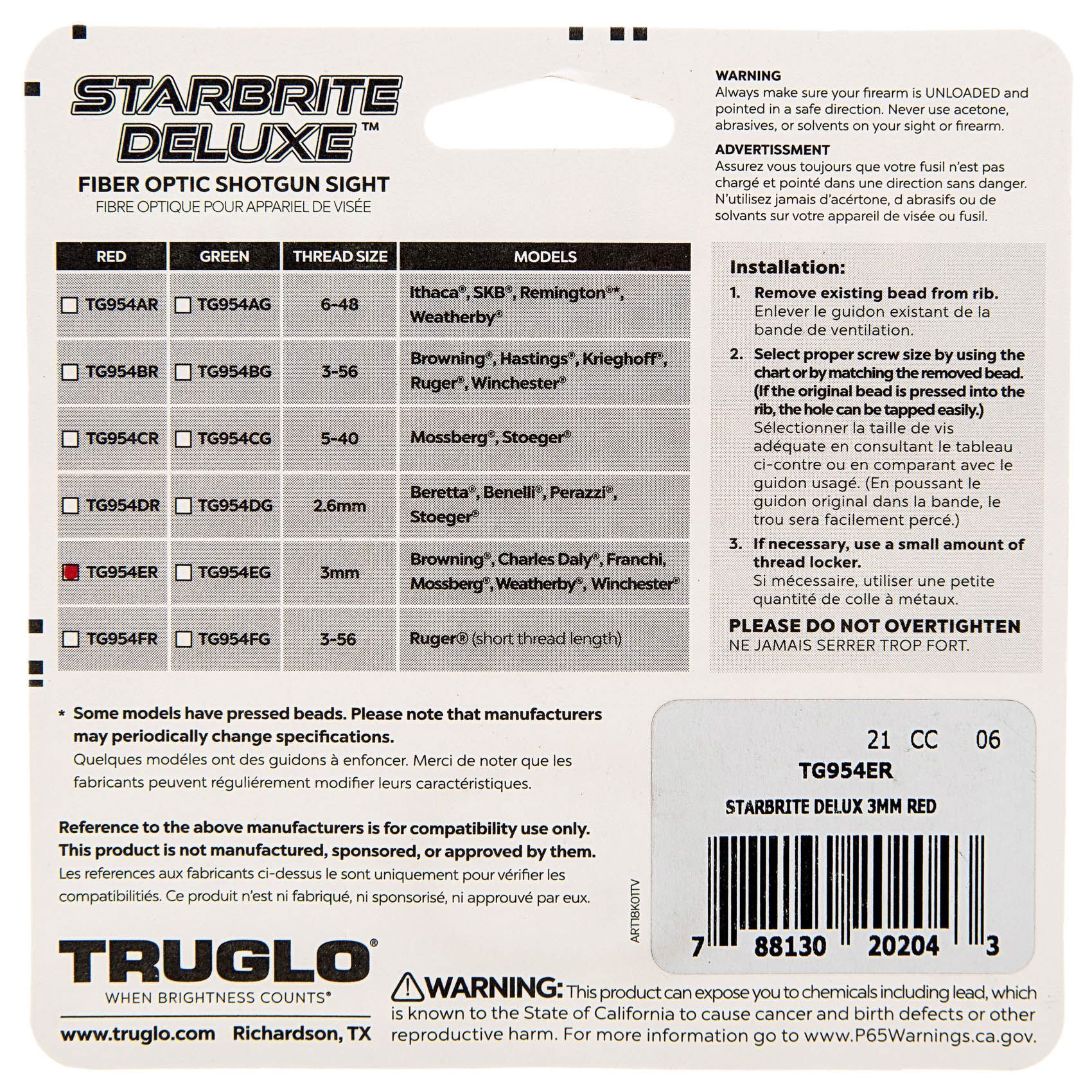 Мушка Truglo TG954ER универсальная, красная, винтовая, 3,0мм