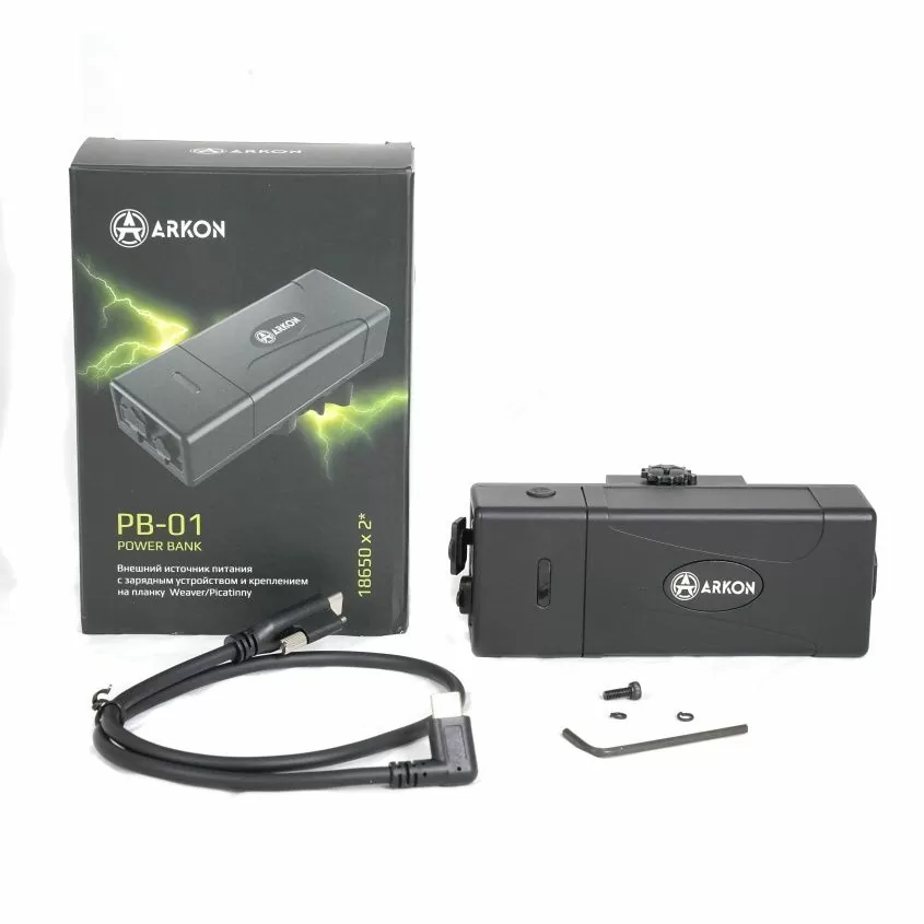 Надёжный внешний аккумулятор PB-01 (powerbank) предназначен для бесперебойного питания электрооптических устройств прямо на оружии. Он устанавливается с помощью быстросъёмного крепления Weaver/Picatinny, что обеспечивает максимальное удобство в эксплуатации. Устройство поддерживает питание от двух аккумуляторов формата 18650 (в комплект не входят), предоставляя ёмкость от 5000 до 7000 мАч — этого достаточно для длительной работы приборов в полевых условиях.