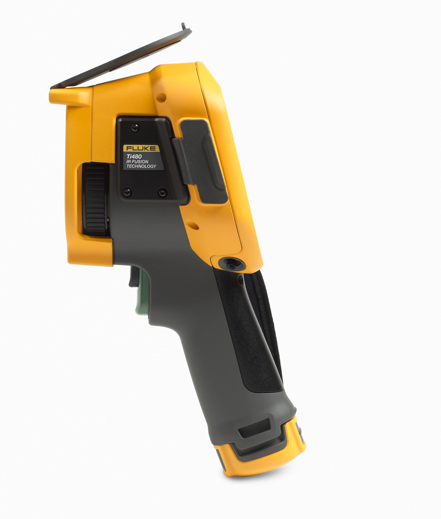 Тепловизор Fluke Ti480 выполнен в виде моноблочной конструкции с пистолетной рукояткой, которая не имеет подвижных частей кроме поднимающейся вверх крышки объектива. Это обеспечивает высокую надёжность при эксплуатации в жёстких условиях: вероятность повреждения при падении и случайных ударах снижается.