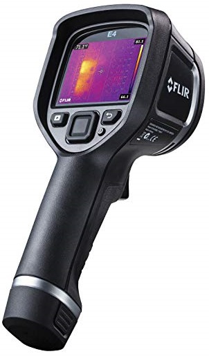 Тепловизор Flir E4 открывает линейку быстродействующих тепловизионных камер Eх, нашедших широкое применение как на производстве, так и в быту. Тепловизор Flir E4 использует ИК-матрицу с разрешением 80х60 пикселей. На экране прибора для наглядности разность температур приведена в виде цветовых переходов. Измеритель обладает достаточно высокой чувствительностью – 0,15°C и регистрирует температуры до +250 °C.