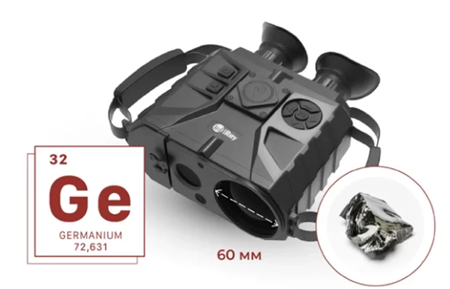 Германиевый объектив бинокля 60 мм выполнен с нулевым допуском, предоставляя чистое изображение без оптических искажений. Для увеличения картинки можно воспользоваться опцией цифрового зума с шагом х1, х2, х4. Угол пространственного поля зрения FOV (Field of view) имеет значение 6,4° - 5,9°, в линейном выражении это соответствует области пространства размером 112 - 103 метра на удалении в один километр.