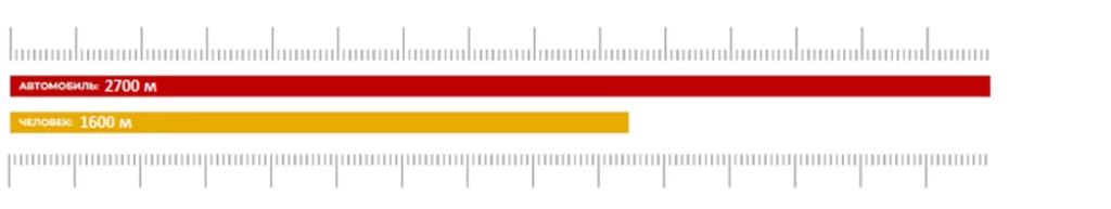 Поле зрения оптической камеры FOV 5,2° х 3,8° или 9,1 - 6,6 м/100м.