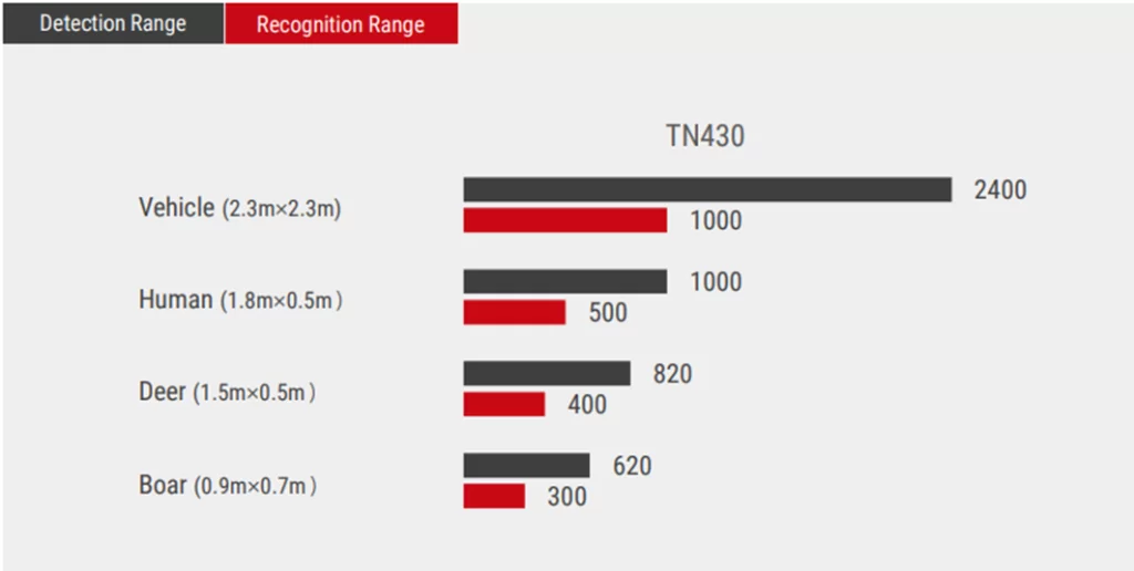 Бинокль оснащен высокочувствительным сенсором собственного производства - VOx 400×300 пикселей, 17 мкм, NETD ≤ 30мК. Оксид ванадиевая матрица с позволяет улавливать минимальные отклонения температуры для построения качественного термографического изображения. Спектральный диапазон чувствительности 8-14мкм находится в длинноволновой части ИК спектра LWIR, где земная атмосфера не препятствует прохождению сигнала. Тепловизионная оптика одинаково хорошо видит как в темноте, так и при ярком дневном освещении, также преградой не являются задымление, плотный туман, осадки.