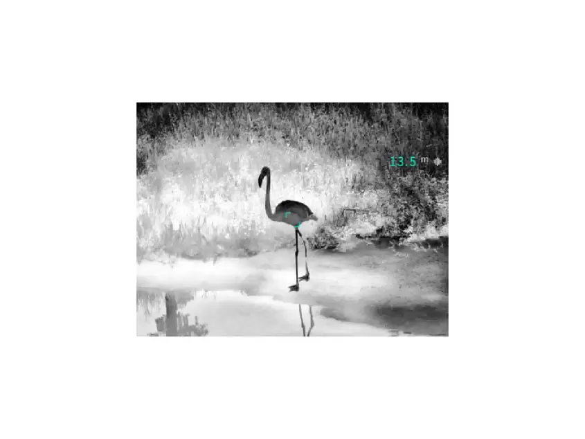 Широкоугольный германиевый объектив с фокусным расстоянием 35 мм и апертурой F1.1 обладает начальным оптическим увеличением 2,3х. Функция цифрового увеличения работает в диапазоне 1х-4х. Шаг изменения кратности в 0,1х позволяет подобрать идеальное увеличение для детального изучения удаленных целей. Угол пространственного поля зрения - имеет значение 11,1° - 8,3°. В линейном выражении это соответствует области пространства размером 194 - 145 метров на удалении в 1000 м. Широкоугольная оптика позволяет быстро находить цель на открытых пространствах, также комфортно вести наблюдение за группой животных и сопровождать их в движении. Резкость на дистанцию наводится при помощи фокусировочного барабана между окулярами. Плавный ход и рифленая поверхность позволяют манипулировать настройками даже в зимних или тактических перчатках.