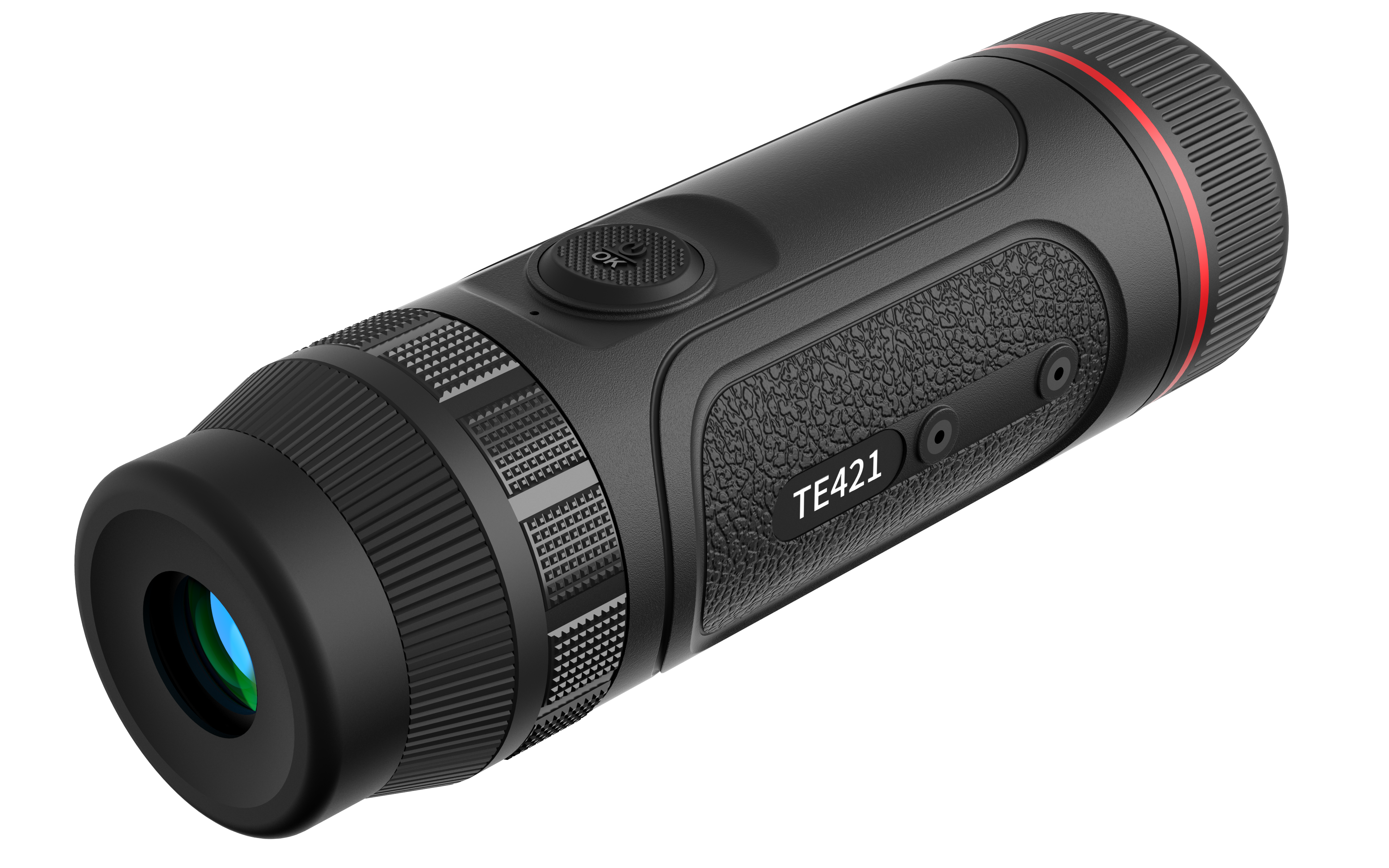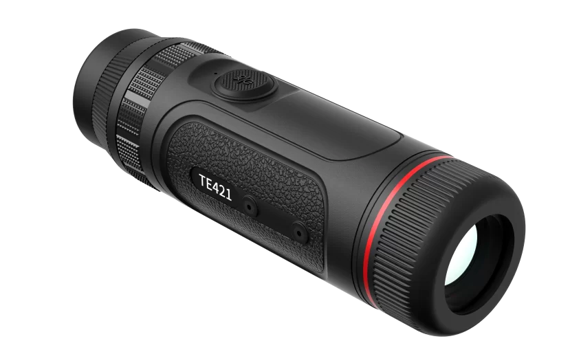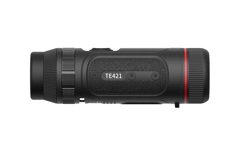 В тепловизоре Guide TE421 установлен германиевый объектив с фокусным расстоянием 25 мм и апертурой F1.0. Прибор обеспечивает начальное увеличение 1,9х и поддерживает цифровое масштабирование (Digital zoom) в пределах от 1x до 4x. Поле зрения FOV составляет 11,0°×8,2°, что соответствует видимой области пространства в линейных размерах 19×14 метров на дистанции 100 метров.