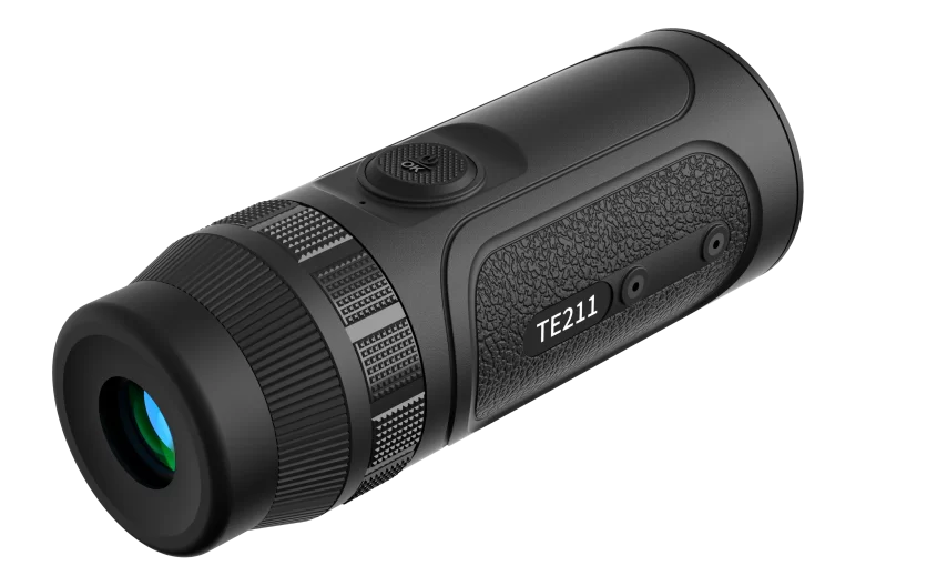 Guide TE211 оснащен объективом с передней линзой из германия, обладает фокусным расстоянием 10 мм и светосилой F1.0. Устройство имеет базовое увеличение 1,2х и функцию цифрового зума с шагом от 1x до 4x. У этой модели самый большой угол обзора FOV, который равен 17,5°×13,1°, что соответствует области пространства размером 31×23 метров на удалении 100 метров.