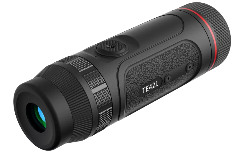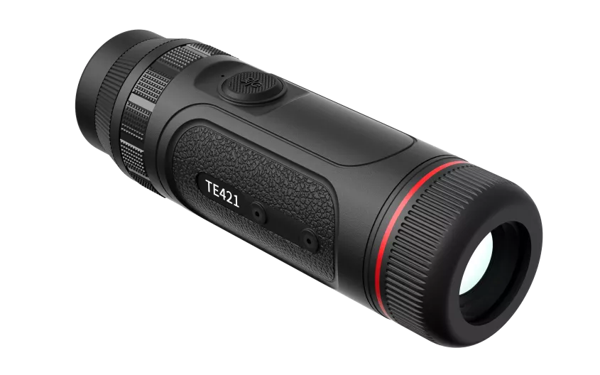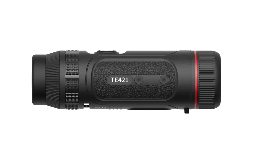В тепловизоре Guide TE421 установлен германиевый объектив с фокусным расстоянием 25 мм и апертурой F1.0. Прибор обеспечивает начальное увеличение 1,9х и поддерживает цифровое масштабирование (Digital zoom) в пределах от 1x до 4x. Поле зрения FOV составляет 11,0°×8,2°, что соответствует видимой области пространства в линейных размерах 19×14 метров на дистанции 100 метров.