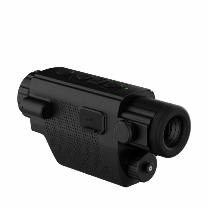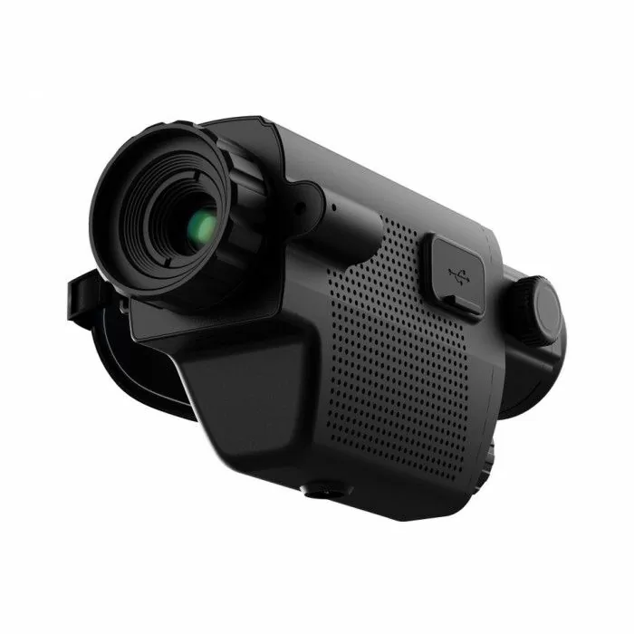 Монокуляр выполнен из прочного алюминиевого сплава с элементами ABS-пластика и защищён по стандарту IP66, что гарантирует устойчивость к влаге и пыли. Работа осуществляется от аккумулятора формата 18650 (3500 мАч), обеспечивающего до 6 часов непрерывного использования. Поддерживается зарядка через USB Type-C с максимальной мощностью до 2А.