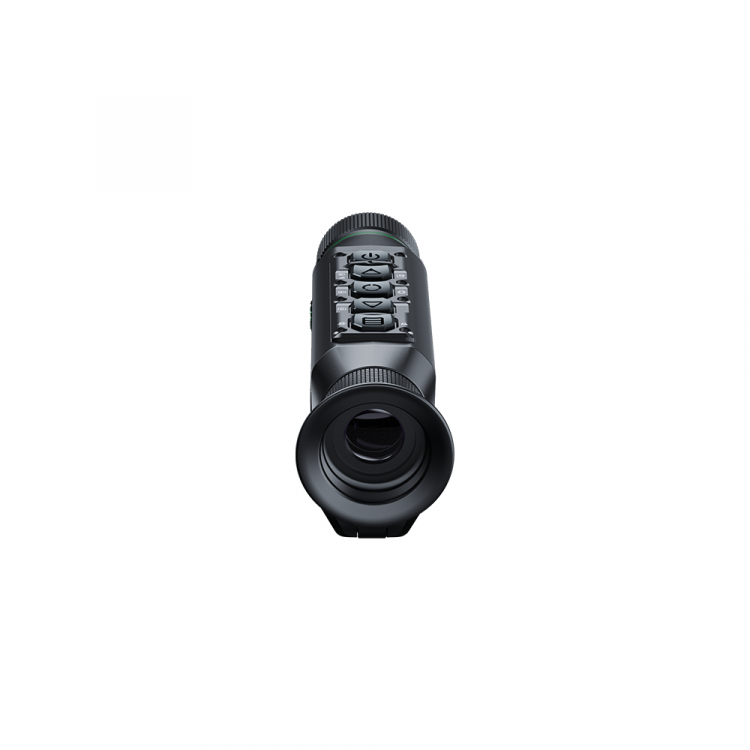 Масса с аккумулятором — около 370 г. Прибор удобно держать одной рукой, можно вести длительные наблюдения с рук или поставить на штатив 1/4″. От аккумулятора 18650 прицел работает до 6 часов, поддерживается питание от Power Bank по USB-C. Корпус защищён по IP67, рабочие температуры −20…+50 °C, допускается кратковременное погружение в воду до 1 м.