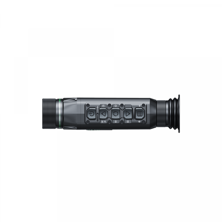 Все элементы управления сгруппированы на верхней панели. Кнопки мягкие и тихие, с рельефными пиктограммами, их легко нажимать в перчатках. Наглазник защищает от боковой засветки. Удаление выходного зрачка 20 мм и диоптрийная подстройка ±5 дптр удобны для пользователей с очками.
