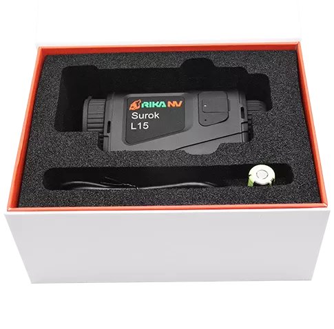 RikaNV Surok L15 — компактный и лёгкий тепловизионный монокуляр для ближних и средних дистанций. Объектив 15 мм F/0.9 и матрица 256×192 с шагом 12 мкм и чувствительностью NETD < 25 мК дают понятную и контрастную картинку даже в условиях слабой видимости.