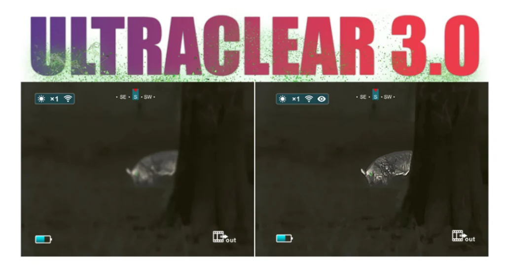 В тепловизорах Iray Cabin установлен обновленный обработчик картинок Ultraclear версии 3.0. Усиленная аппаратная часть и новые алгоритмы адаптивной фильтрации позволили значительно улучшить качество и повысить детализацию, теперь видны все мельчайшие подробности животного: усы, шерсть, глаза и др.