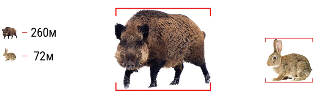 Стадиометрический дальномер позволяет вычислить расстояние к цели с минимальной погрешностью. В памяти прибора есть несколько предустановленных типов животных. Для определения дистанции достаточно выбрать соответствующий тип и отметить его границы. Точные данные о расстоянии играют ключевую роль при выстрелах на средних и дальних дистанциях.