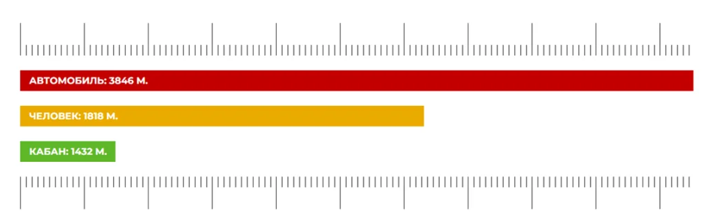 Дальность обнаружения объектов: (1,8х0,5м) — 1818м, (2,3х2,3м) – 3846м.
