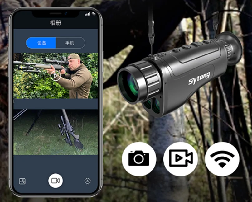 Тепловизор Sytong GS03-25LRF позволяет производить видеозаписи на карту TF объемом до 128 Гб. Видео хранится в формате MP4 с разрешением 1024x768 пикселей. Дополнительно устройство оборудовано видеовыходом для подключения внешних устройств воспроизведения. При помощи фирменного мобильного приложения «SAPP» возможна передача видео на смартфоны, удаленное управление настройками и пр.
