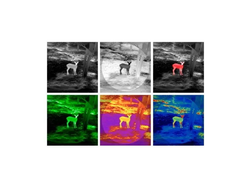 Большой набор цветовых схем отображения дает возможность адаптировать работу тепловизора под различные задачи, в зависимости от расстояния или условий видимости.