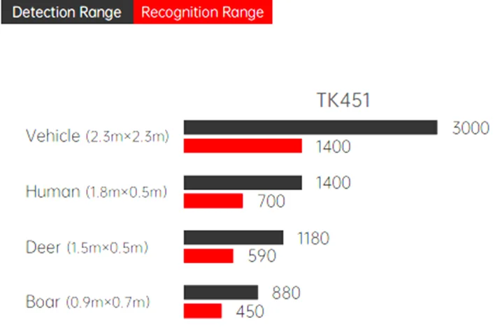 Guide TK451 – дальнобойный тепловизионный монокуляр от гиганта индустрии Guide Sensmart (Китай). Мощная оптика с длиннофокусным германиевым объективом 50мм/f1.2 имеет диапазон увеличения от 3,3 до 13,2 крат, при этом приближать картинку можно плавно с шагом 0,1х. Дальность обнаружения по фигуре человека составляет 1400 метров и открывает широкие возможности для разнообразных сценариев применения. Тепловизор может с одинаковым успехом использоваться на охоте при поиске животных, в поисково-спасательных работах, при охране и патрулировании территории и др. Чувствительный Тепловизионный сенсор VOx 400х300 пикселей, 17 мкм собственного производства обеспечивает получение качественного изображения даже при крайне плохих условиях видимости. Пользователям предложен большой набор полезных опций по записи и потоковой передаче видео. Также имеется встроенный лазерный целеуказатель, LED фонарь, функции отслеживания самой горячей точки, кадр в кадре и многое другое. Тепловизор Guide TK451 – надежный инструмент для поисков в сложных погодных условиях.