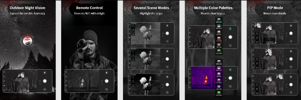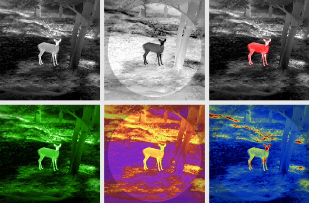 Пользователям доступен набор из 6-ти цветовых палитр, предназначенных для решения самых разнообразных задач. Так, например, монохромные варианты с горячими оттенками черного и белого наиболее эффективны при поисках на дальних дистанциях. При детальном изучении объекта на близком расстоянии оптимальны цветовые решения с теплыми оттенками.