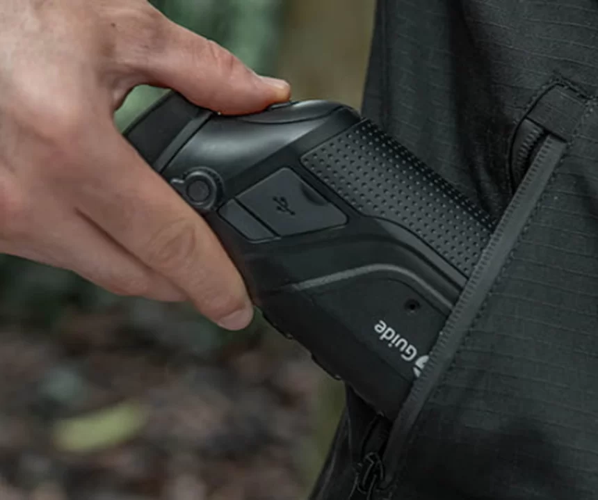 Тепловизионный монокуляр Guide TD421 – обновленная модель серии TD Gen2 Series выпуска 2023 года. Компактный тепловизор с дальностью обнаружения 1000 метров может использоваться в самых различных сценариях. Высокотехнологичная оптика на германиевом объективе F25 мм f1.1 и современном ИК-сенсоре Vox 384×288 рх,12 мкм предоставит качественное термографическое изображение с максимальным уровнем детализации. В помощь охотникам имеется большой набор опций для выбора оптимального режима отображения. Это пять цветовых палитр, три режима с индивидуальными настройками чувствительности сенсора, функция PIP ("Картинка в картинке") и многое другое. Тепловизор прекрасно защищен от любых капризов погоды, имеет длительное время автономной работы. Это один из лучших инструментов бюджетного сегмента для применения на охоте.