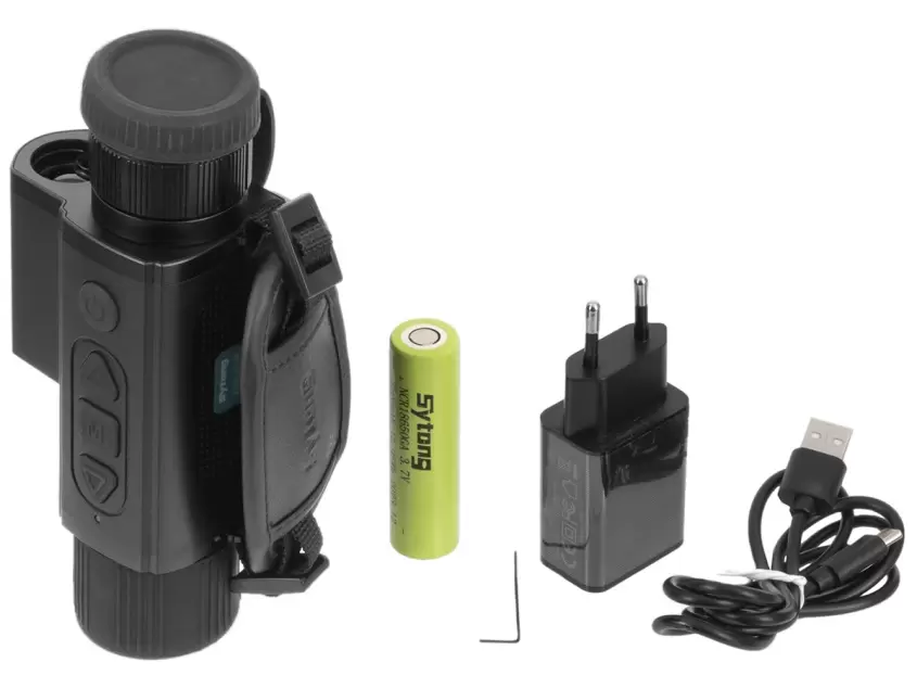 Передняя линза объектива у Sytong XS06-35LRF изготовлена из Германия (32 Ge). Обработка с нулевым допуском избавила от любого рода оптических искажений. Базовая кратность x1.7, для приближения изображения доступен плавный и дискретный зум (Digital zoom) х1, х2, х4 и х8. Большой угол обзора хорошо подходит для поисков на открытом пространстве и в стесненных условиях.