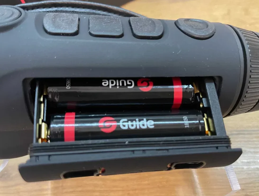 Для работы тепловизионного монокуляра используются две перезаряжаемые батареи 18650, гарантирующие до 12 часов автономной работы. Если возникает необходимость в более длительной эксплуатации, можно воспользоваться внешним источником питания, подключаемым через интерфейс USB Type-C. Соответствующий кабель идет в комплекте с монокуляром.