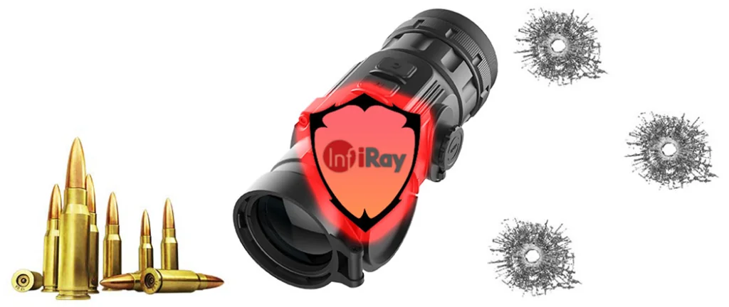 Iray XClip CH 50W имеет корпус, изготовленный из высокопрочного алюминиевого сплава. Благодаря уровню защиты IPX7, устройство способно эффективно работать при высокой влажности и в условиях дождя или снега. При весе насадки в 530 грамм, крепление прицела требует особого внимания. Допустимая дульная энергия выстрела ограничена 6 кДж.