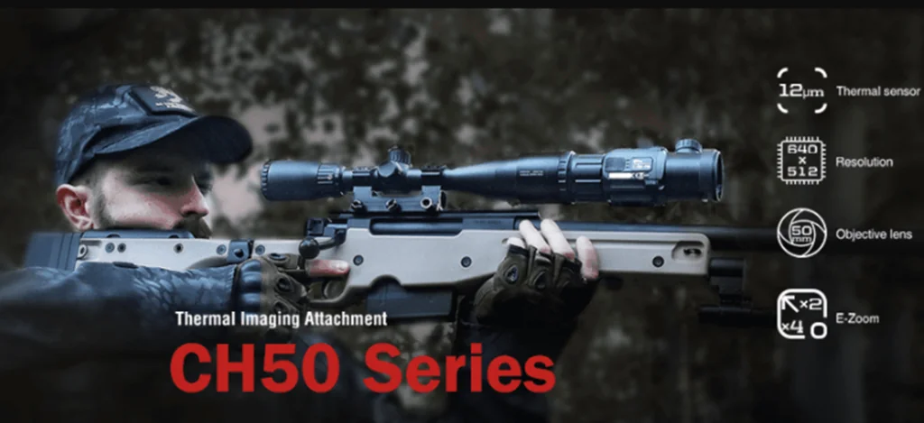 iRay xClip CH 50W - дальнобойная тепловизионная насадка, предназначенная для установки на объективы дневных прицелов. Производитель рекомендует использовать совместно с прицелами, у которых оптическое увеличение находится в пределах 1-9х и диаметры объективов составляют 40 – 55 мм. Фронтальная установка с жестким клипсообразным креплением обеспечивает центрированное положение аксессуара, не требующее повторной пристрелки дневной оптики. Охотники получают массу преимуществ, среди которых возможность использования привычной сетки и механики выверки. Дальность обнаружения теплоконтрастных целей размером с человека составляет более 2,5 километров, что позволяет решать все стрелковые задачи на любом типе охот. Дополнительным бонусом является возможность использования насадки в качестве отдельного наблюдательного прибора. Присоединив окулярный модуль, вы получите тепловизионный монокуляр с увеличением от 1 до 4х, который можно использовать для поисков и ночных наблюдений за жизнью животных. iRay xClip CH 50W получает только положительные отзывы со стороны охотников. Насадка с тепловизором уверенно держит отдачу мощных гражданских калибров и готова к работе в самых суровых погодных условиях.