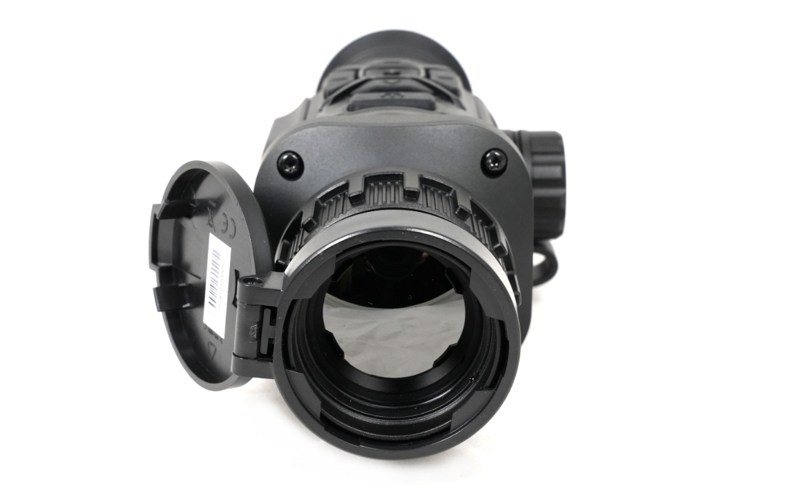 Объектив с фокусным расстоянием 35 мм и апертурой F1.0 имеет самый широкий угол обзора (FOV) в линейке — 12,5°x10°, что обеспечивает сектор видимости размером 21,9 на 17,5 метров на расстоянии в 100 метров. Базовая кратность 1,6х может быть увеличена до 12,8х с помощью функции Digital zoom, которая поддерживает как плавное, так и дискретное изменение масштаба в пределах от 1х до 8х. Фокусировка выполняется вручную при помощи низкопрофильного кольца на объективе.