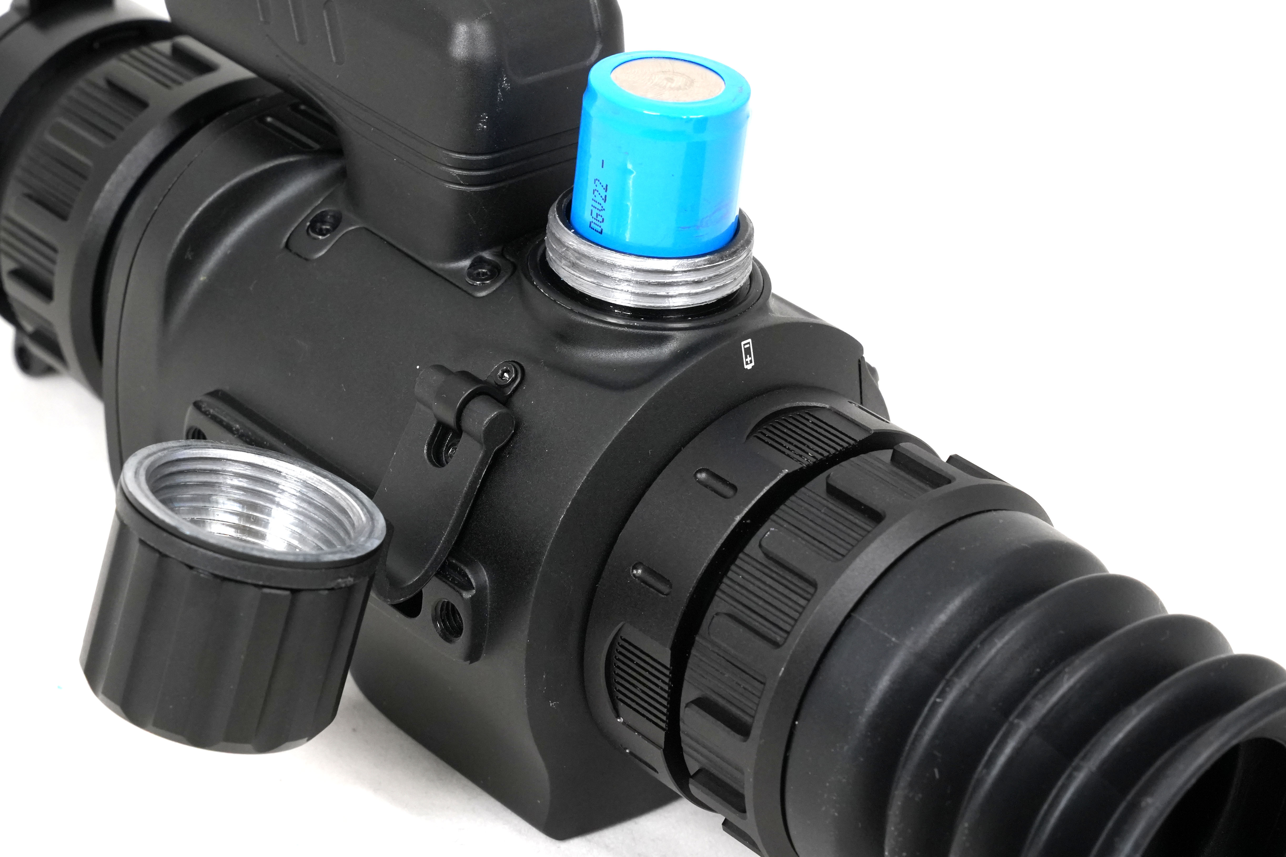 Компактный корпус прицела выполнен из прочных полиамидных материалов и соответствует стандарту защиты от влаги IP66. Изделие рассчитано на работу с оружием крупных калибров и выдерживает дульную энергию выстрелов до 6000 Дж. Электронная начинка прицела питается от сменной батареи типоразмера 18650. Полного заряда источника хватит на 4,5 часа автономной работы. Для продления времени эксплуатации предусмотрена возможность подключения к внешнему источнику питания, такому как Powerbank с интерфейсом 5V (USB).