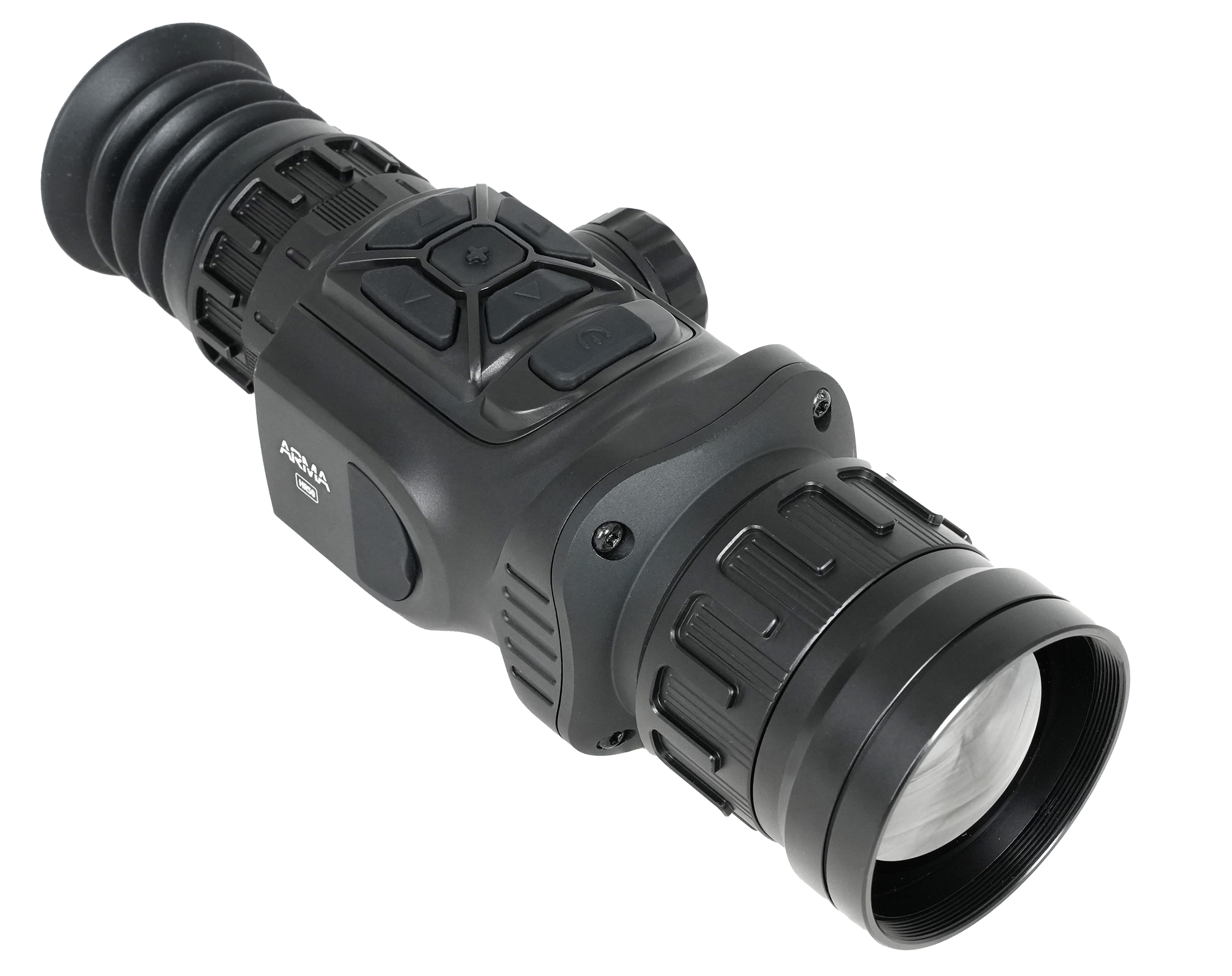 Прицел Arkon Arma HR50 оснащен германиевым объективом с фокусным расстоянием 50 мм и апертурой f/1.0. Начальный уровень оптического увеличения равен 2,4х, а для масштабирования изображения имеется функция цифрового увеличения от 1х до 8х. Угол пространственного поля зрения FOV (Field of view) имеет значение 8.8°x7.0°, что в линейном выражении соответствует области пространства размером 15,4 - 12,2 метров на удалении в 100 м.
