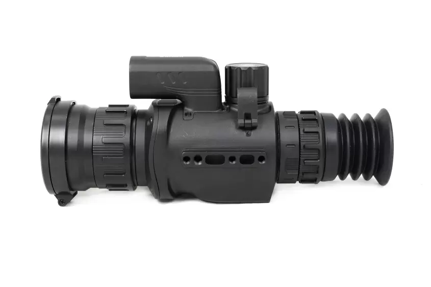 Основой тепловизионного видения служит высокопроизводительный ИК-сенсор VOx с разрешением 640х512 пикселей. Матрица выполнена с плотностью посадки детекторов 12 мкм, что гарантирует высокое разрешение изображения. Порог тепловой чувствительности NETD ≤25 мК позволяет фиксировать малейшие изменения температуры на поверхности объектов, создавая детализированные термографические изображения. Модуль работает в длинноволновом инфракрасном диапазоне LWIR (7-14 мкм), обеспечивая видимость в полной темноте, а также сквозь дым, туман и осадки. Частота обновления кадров составляет 50 Гц, что обеспечивает плавное изображение при движении объектов.
