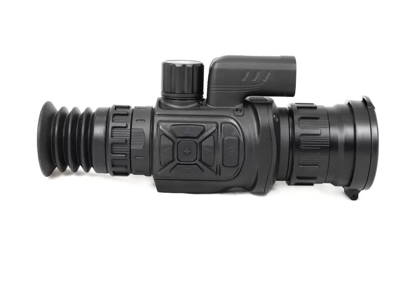 Прицел питается от сменной литиевой батареи типа 18500/18650, которая обеспечивает до 4,5 часов автономной работы. Для увеличения времени работы предусмотрена возможность подключения внешнего источника питания через интерфейс USB Туре-С (кабель входит в комплект поставки).