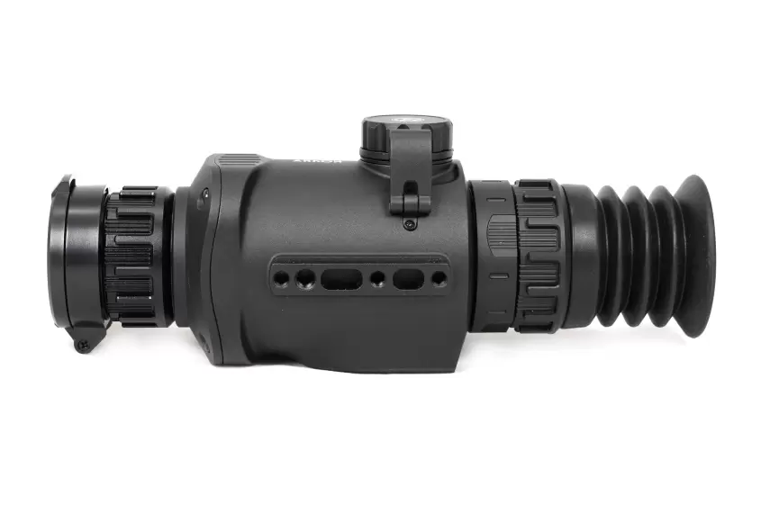В основе тепловизионного видения лежит высокочувствительный ИК-сенсор VOx с разрешением 256х192 пикселей и технологией плотности детекторов 12 мкм. С порогом тепловой чувствительности NETD ≤50 мК, модуль способен улавливать даже минимальные температурные колебания на поверхности объектов, обеспечивая построение высокодетализированных термографических изображений. Работа в длинноволновом инфракрасном спектре LWIR (7-14 мкм) позволяет прицелу «видеть» теплоконтрастные объекты в полной темноте и сквозь атмосферные преграды. Частота обновления кадров составляет 50 Гц.