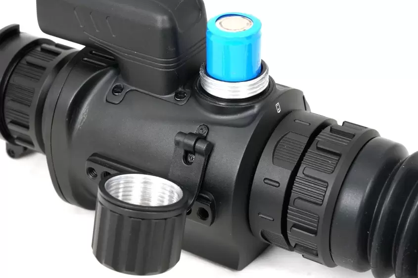 Энергоснабжение прицела обеспечивает один элемент типа 18650 с напряжением 3,7 вольт. Полностью заряженной батареи достаточно для 5 часов автономной работы. Для увеличения времени работы предусмотрена возможность подключения внешнего источника питания типа Power bank с интерфейсом 5V (USB).