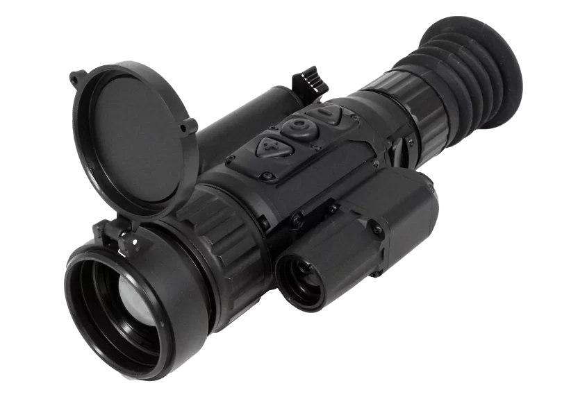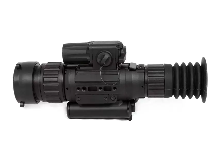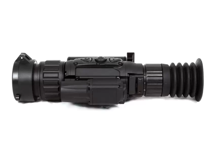 Современный дальномер, в котором излучатель и приемник встроены в один оптический канал, значительно расширило возможности прицела. За качественную тепловизионную картинку отвечает передовой ИК-сенсор с чувствительностью NETD ≤25 мК. Большой германиевый объектив на 50-ти миллиметровой линзе предоставит диапазон увеличения от 2 до 16х. Дальность обнаружения составляет 1500 метров. Прицел имеет техническую возможность для осуществления точных выстрелов на дальних дистанциях. Для этого предусмотрен большой набор прицельных сеток и встроенный 3D-акселерометр. Питание от двух элементов 18650 обеспечит до 12 часов автономной работы. Корпус прицела имеет класс защиты стандарта IP68 и готов к работе на «взрослых», снайперских калибрах при любой погоде в широком диапазоне рабочих температур.